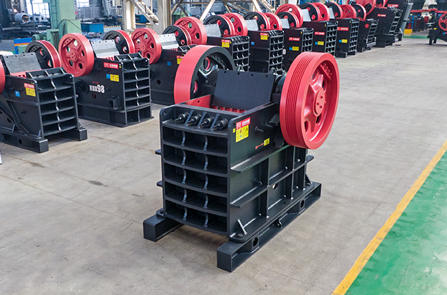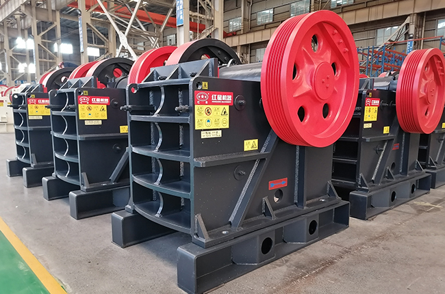 電動機驅動皮帶和皮帶輪,通過偏心軸使動顎上下運動,當動顎上升時,肘板與動顎間夾角變大,從而推動動顎板向固定顎板接近,與次同時,物料被壓碎或劈碎,達到破碎的目的;當動顎下行時,肘板與動顎夾角變小,動顎板在拉桿、彈簧的作用下,離開固定顎板,此時已破碎物料從破碎腔下口排出。隨著電動機連續轉動而破碎機動顎作周期運動壓碎和排泄物料,實現批量生產。