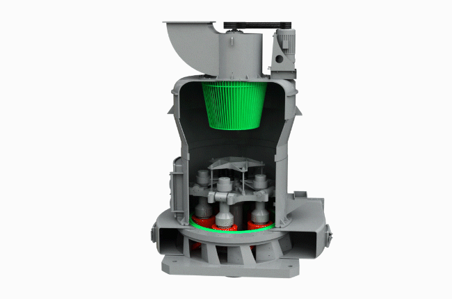 在微粉磨研磨室內(nèi),磨輥總成通過(guò)橫擔(dān)軸懸掛在磨輥吊架上,磨輥吊架與主軸及鏟刀架固定聯(lián)結(jié),壓力彈簧靠拉力桿緊緊的壓在磨輥軸承室的懸臂外端上,以橫擔(dān)軸為支撐點(diǎn),靠彈簧壓力使磨輥緊緊壓在磨環(huán)內(nèi)圓表面上,當(dāng)電機(jī)通過(guò)傳動(dòng)裝置轉(zhuǎn)動(dòng)時(shí),裝在鏟刀架上的鏟刀與磨輥同步轉(zhuǎn)動(dòng),磨輥在磨環(huán)內(nèi)圓表面上滾動(dòng)的同時(shí)繞自身轉(zhuǎn)動(dòng),分析機(jī)通過(guò)電機(jī)傳動(dòng)裝置帶動(dòng)分析機(jī)葉輪旋轉(zhuǎn),其分析機(jī)的速度調(diào)整決定出粉細(xì)度。