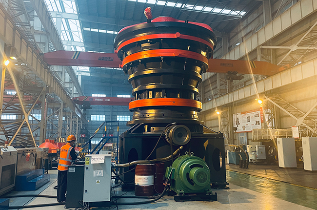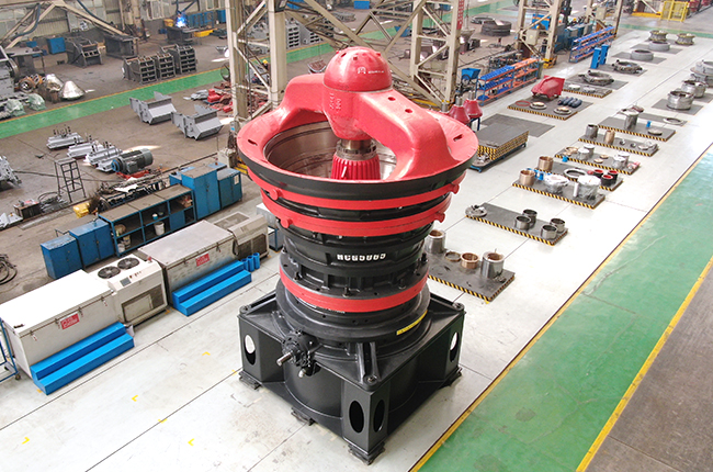 整體式鍛造主軸,避免了動錐松動的危險,從而減少了停機時間。上部軸頸加大,采用大半徑圓弧并拋光,強度高,能夠適應惡劣的破碎條件。
